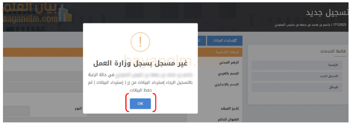 علــى زر (موافــق) وتنتقــل إلــى صفحــة التســجيل مباشــرة.
