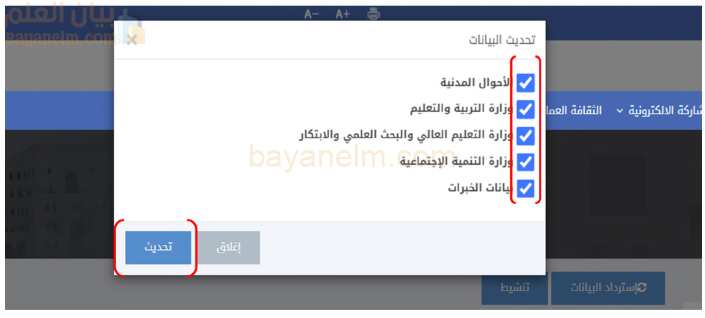 قــم باختيــار الجهــات ذات العلاقــة الظاهــرة بالقائمــة الســتجالب البيانــات ومــن ثــم قــم بالضغــط علــى زر (تحديــث).