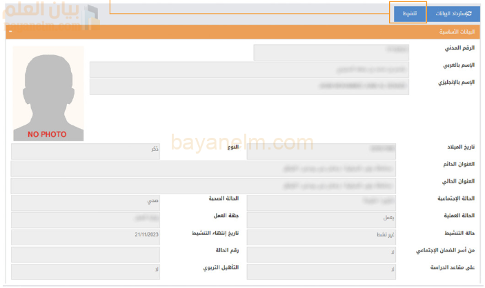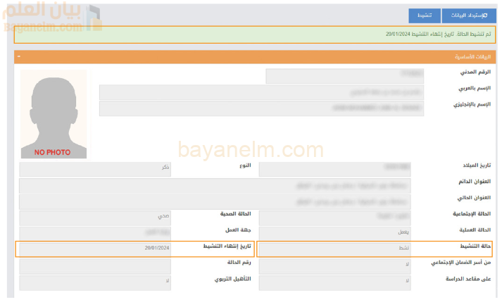 تظهر رسالة تم التنشيط حالة البحث مع تاريخ انتهاء التنشيط وتغير الحالة إلى نشط .
