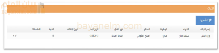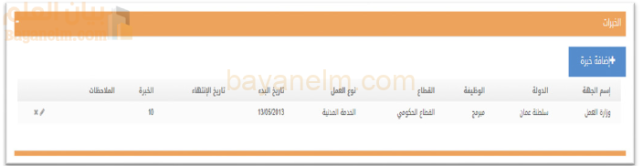 الخبـرات العمليـة الغيـر مدرجـة علـى نظـام التشـغيل بالامـكان إضافتهـا عـن طريـق الضغـط علـى زر (إضافـة خبـرة) :