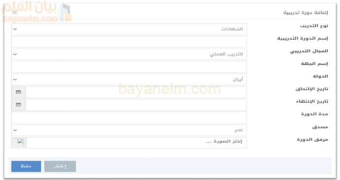 عند الانتهاء من إضافة الدورة التدريبية يرجى الضغط على زر حفظ لحفظ البيانات.