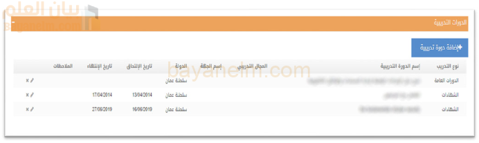 بالامــكان إضافــة الــدورات التدريبيــة المعتمــدة عــن طريــق الخانــة المخصصــة بالضغــط علــى زر (إضافــة دورة تدريبيــة):