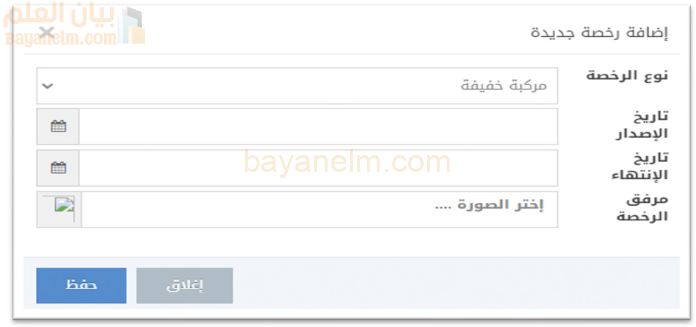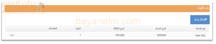بالامكان إضافة رخص القيادة عن طريق الخانة المخصصة بالضغط على زر (إضافة رخصة) :