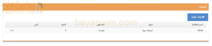 بالامكان إضافة المهارات عن طريق الخانة المخصصة بالضغط على زر (إضافة مهارة) :