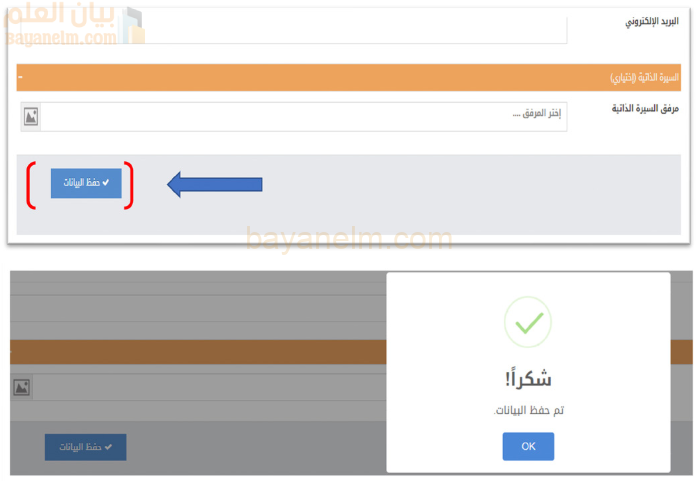 عند الانتهاء من إضافة المهارات يرجى الضغط على زر حفظ لحفظ البيانات.