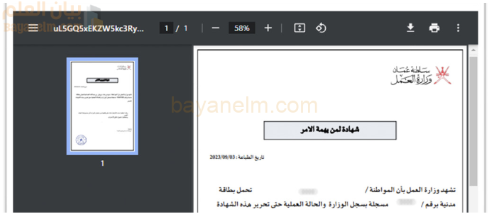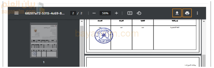 بعــد الانتهــاء مــن تنزيــل الرســالة (إلــى مــن يهمــه األمــر) بالامــكان طباعتهــا أو تخزينهــا علــى الجهــاز كمــا هــو محــدد فــي الصــورة.