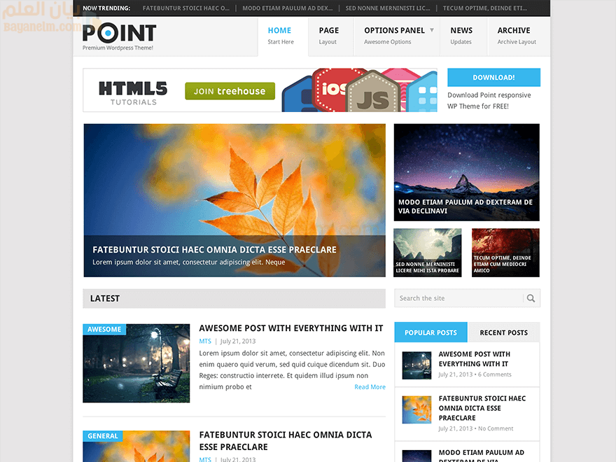 يُعد Point من القوالب العربية المجانية الأخرى التي يمكنك تحميلها مباشرة من مستودع قوالب WordPress.Org واستخدامها على موقعك العربي.