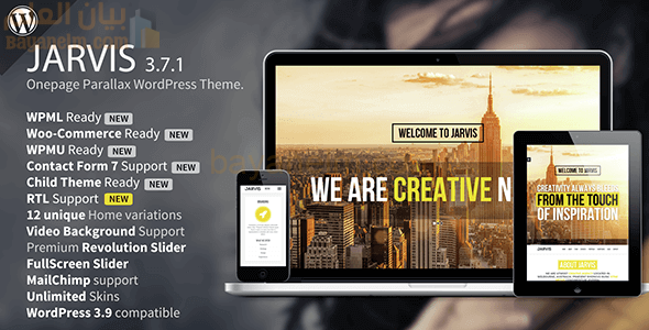قالب Jarvis هو أحد قوالب ووردبريس التي تدعم المواقع العربية، رغم أنه لم يتم تطويره من قِبل مطور عربي.