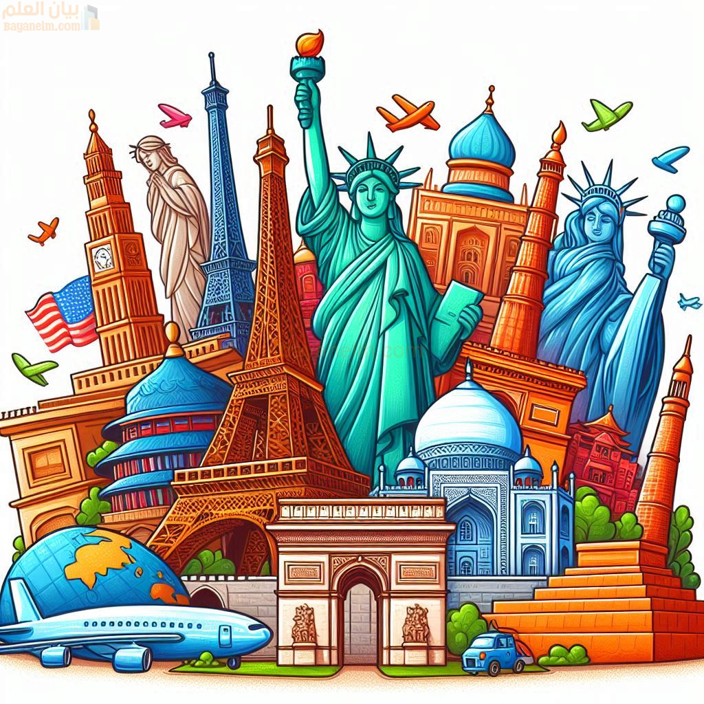 تمثال الحرية : يقع في مدينة نيويورك بالولايات المتحدة الأمريكية، وهو هدية من الشعب الفرنسي إلى الشعب الأمريكي عام ١٨٨٤م بمناسبة الذكرى المئوية لإعلان استقلال أمريكا، وقد وصل التمثال إلى میناء نيويورك في عام ١٨٨٥م.