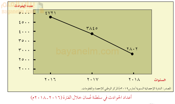 وآدابه، والتدابير، والعقوبات. وقد أسهم قانون المرور في انخفاض أعداد الحوادث في سلطنة عُمان كما هو واضح في (الشكل ).