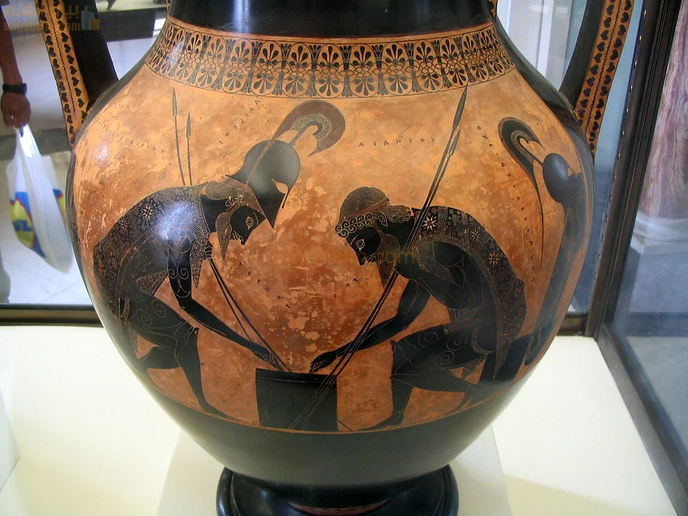 أما أياكس، البطل الآخر، فانتحر بعد خسارته درع أخيل السحري لصالح أوديسيوس، حيث أصابته أثينا بالجنون فقتل قطيعًا من الأغنام ظنًا أنها أعداء. عند استعادته وعيه، شعر بالعار فانتحر لاستعادة شرفه.