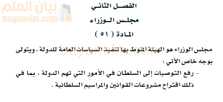رفع التوصيات إلى السلطان في الأمور التي تهم الدولة ، بما في ذلك اقتراح مشروعات القوانين والمراسيم السلطانية .