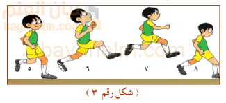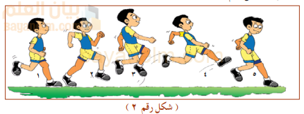 ٢ – أخطو للأمام بخطوات طويلة ومتتابعة مع تبادل مرجحة الركبتين للأمام ولأعلى ، مع العمل على طول فترة الطيران، وأدفع الأرض بقوة ونشاط وسرعة بقدمي مع تبادل حركات الذراعين لمسافة (٣٠) مترًا (أكرر).