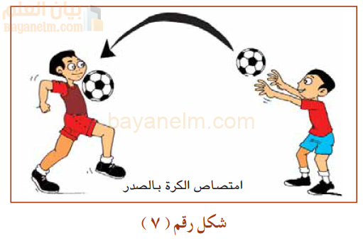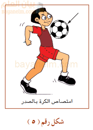 • أرمي الكرة باليدين للأعلى ، وعند سقوطها أمام صدري أقوم بامتصاصها بالصدر ، وأكرر الأداء. شكل رقم (٦).