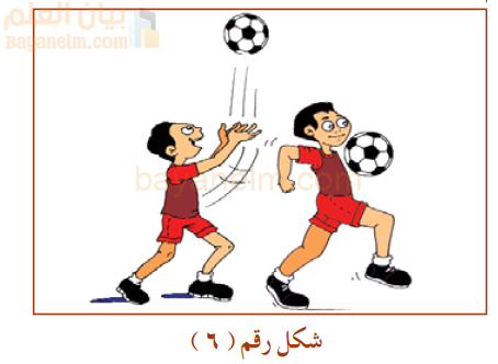 أقف أنا وزميلي على مسافة مناسبة نتبادل رمي الكرة وامتصاصها بالصدر. شكل رقم (٦).