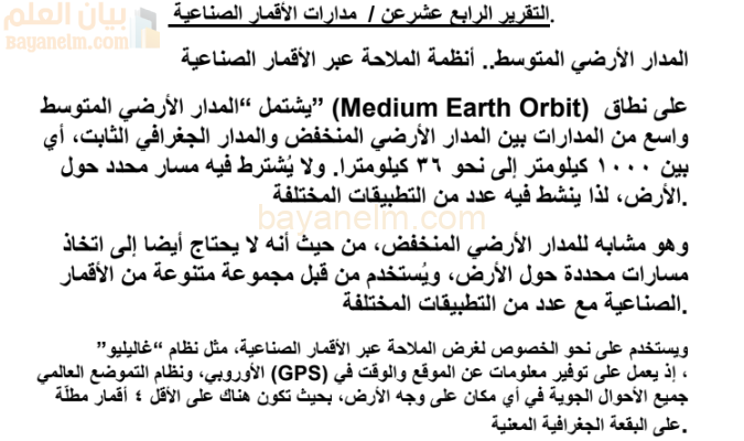 تقرير عن مدارات الاقمار الصناعية لمادة الجغرافيا والتقنيات الحديثة للصف الثاني عشر المنهج العماني