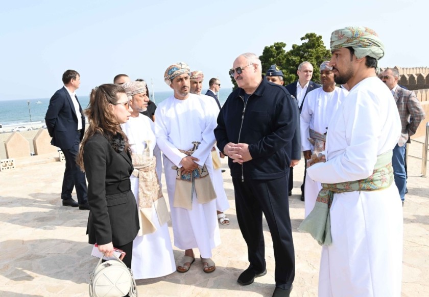 وكان في استقبال فخامة الرئيس البيلاروسي والوفد المرافق له لدى وصوله إلى قلعة صحار معالي محمد سليمان الكندي محافظ شمال الباطنة.