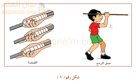 ٥ – أمسك الرمح من القبضة وأحمله فوق كتف ذراعي الرامية وفي مستوى الجبهة تقريبًا.