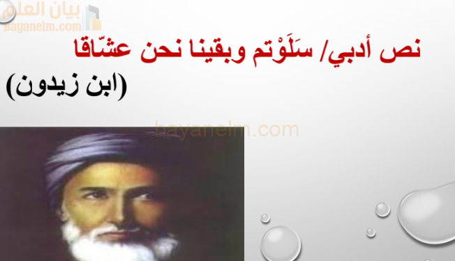 شرح قصيدة سلوتم وبقينا نحن عشاقا لمادة اللغة العربية للصف الثاني عشر الفصل الدراسي الاول