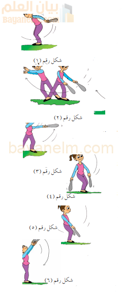 - المرجحة لأعلى بالذراعين أمام الجسم من الجهة اليسرى للجهة اليمنى (٢١ – ٢٤). شكل رقم (٣).